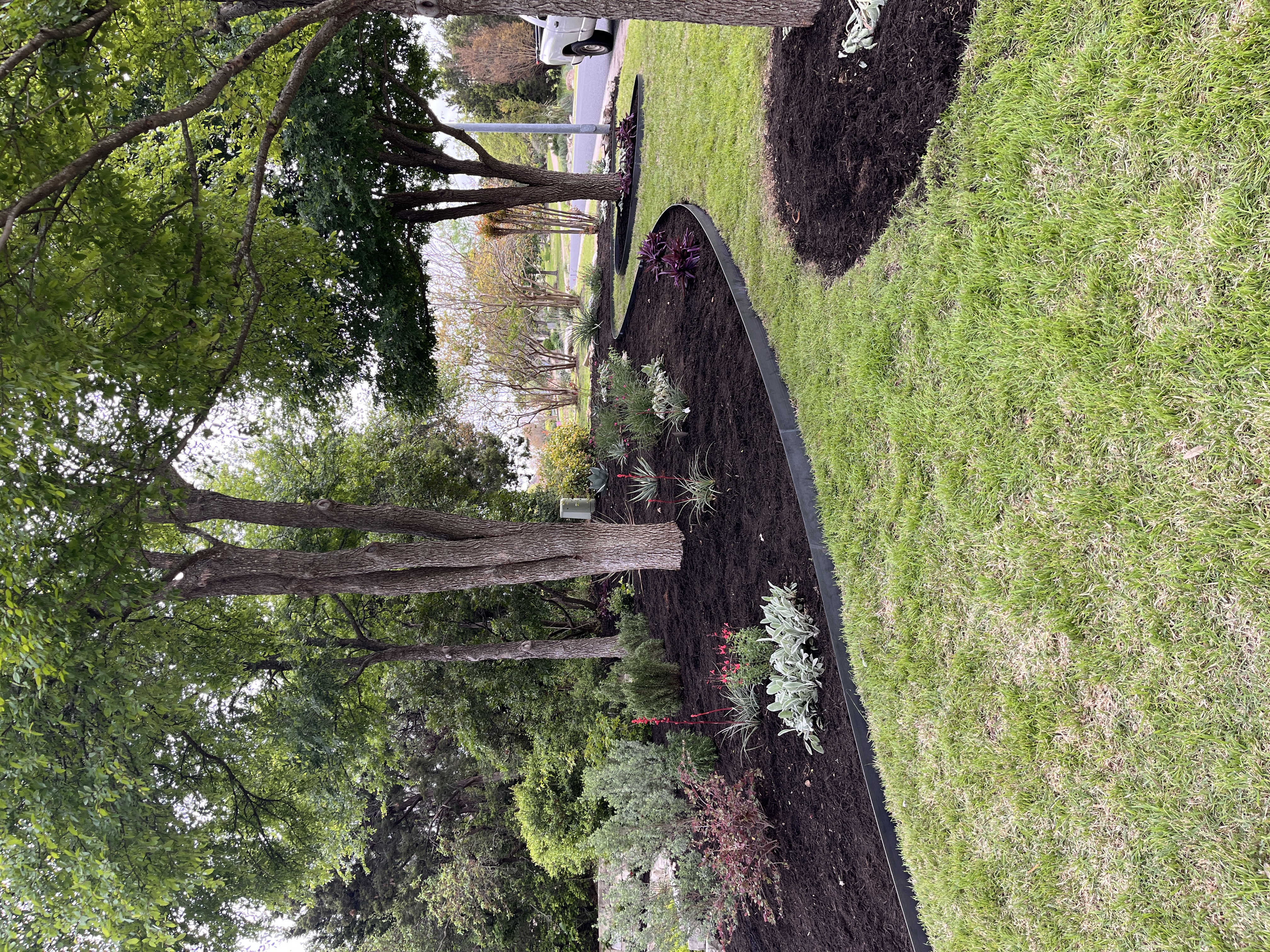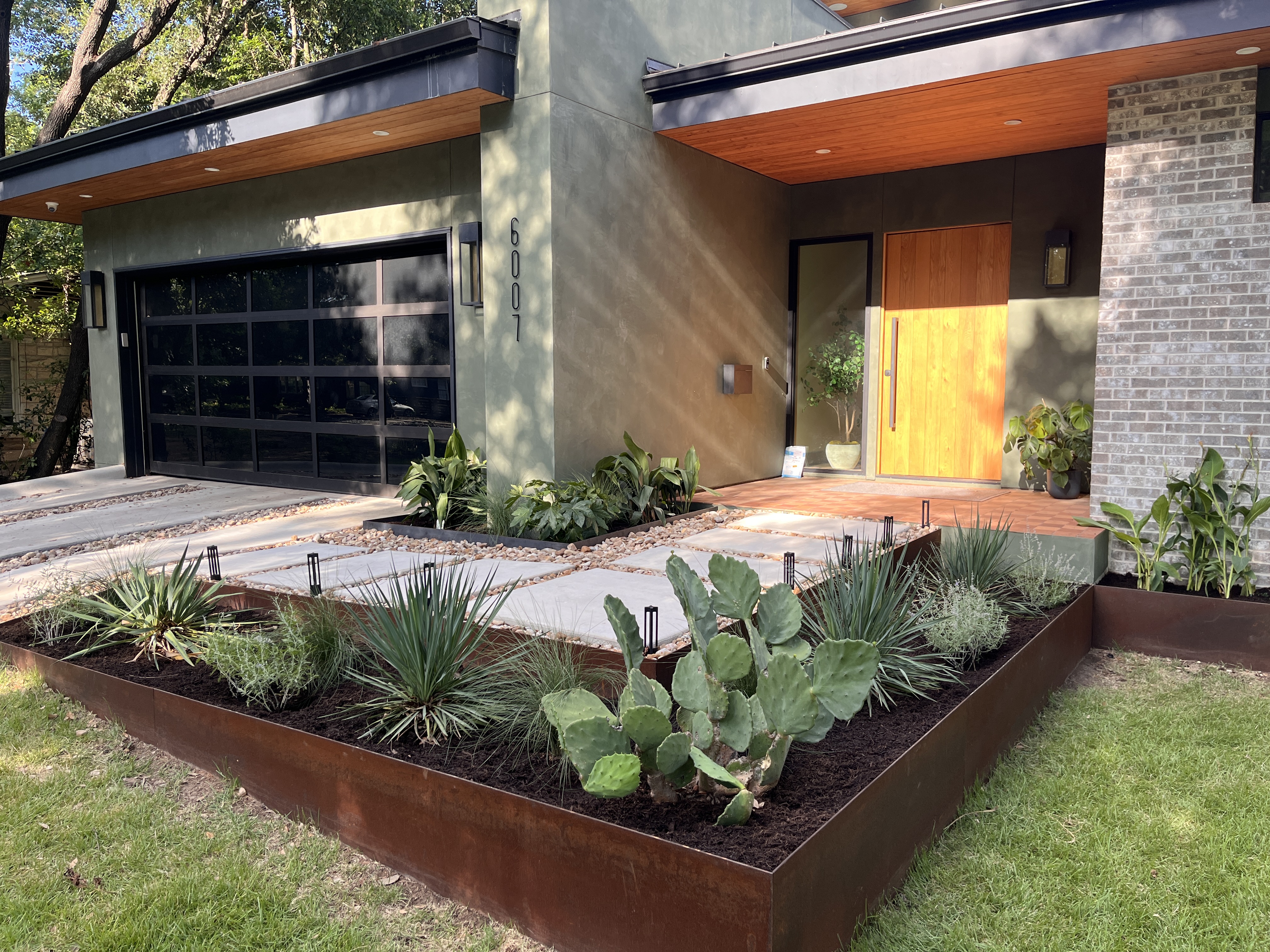 In our landscaping work, we focus on using hardy, native Texas plants specifically curated to survive local conditions such as intense afternoon sun and shade.